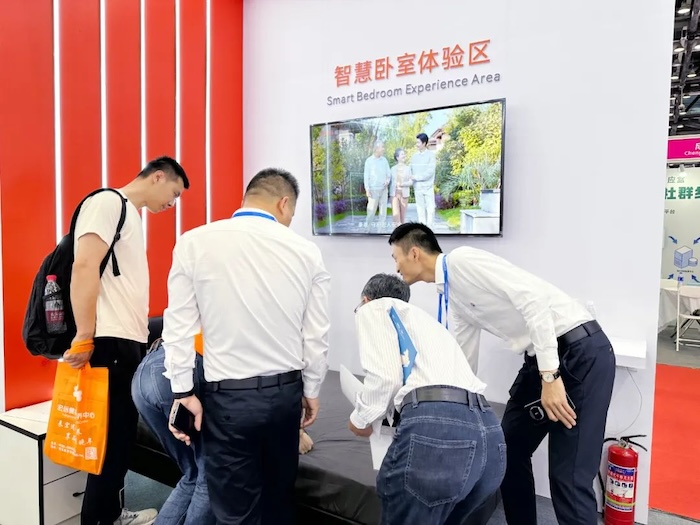 In this exhibition, Hen created a smart bedroom experience area. Visiting guests can not only experience the scene health monitoring (upper arm type electronic sphygmomanometer, sleep monitoring, etc.) products, experience never leave home can be the convenience of health monitoring, also can be in free access, enjoy safety monitoring (emergency rope button, human fall detector, human detector, smoke alarm, etc.) products bring a sense of security.