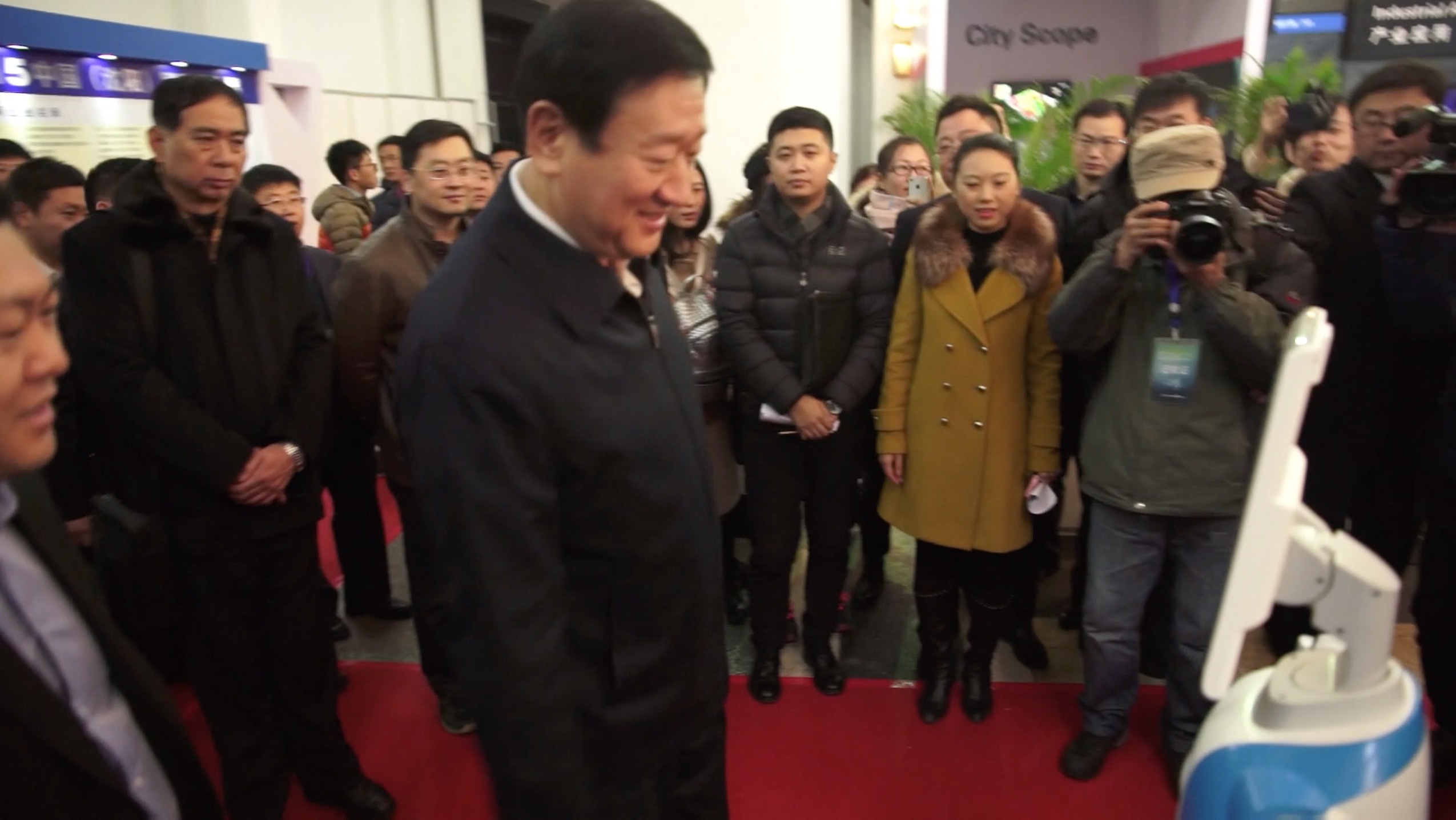 沈陽市市長潘利國與中安科股份智能服務(wù)型“替身”機(jī)器人互動