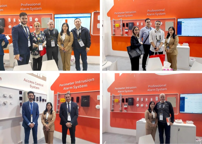 豪恩展臺(tái)在迪拜國(guó)際會(huì)展中心SA-L41展位,現(xiàn)場(chǎng)展示了4G家庭安全系統(tǒng)、智能家居傳感器系統(tǒng)、專業(yè)安防報(bào)警系統(tǒng)、周界入侵報(bào)警系統(tǒng)、門(mén)禁控制系統(tǒng)等五大系統(tǒng)。