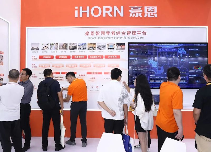 在4號(hào)館4D60展位上,豪恩橙色展臺(tái)獨(dú)樹一幟,現(xiàn)場(chǎng)展示了智慧養(yǎng)老綜合管理平臺(tái)、社區(qū)+居家養(yǎng)老解決方案以及機(jī)構(gòu)養(yǎng)老解決方案三大展區(qū),吸引了行業(yè)內(nèi)眾多企業(yè)與專家參觀。