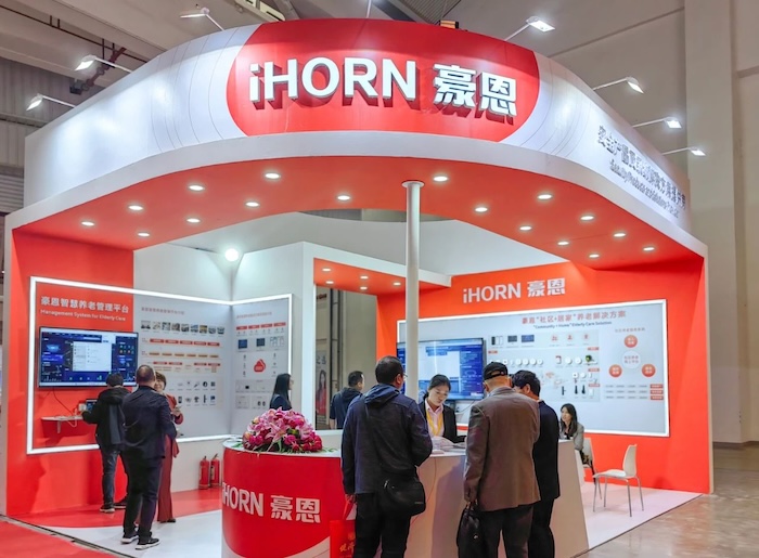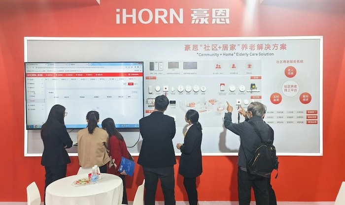 展會現場,豪恩展示了社區+居家、機構養老解決方案,以智慧養老綜合管理平臺為核心,統一管理各種前端智能養老設備,用科技手段幫助老人安心生活,幸福養老。