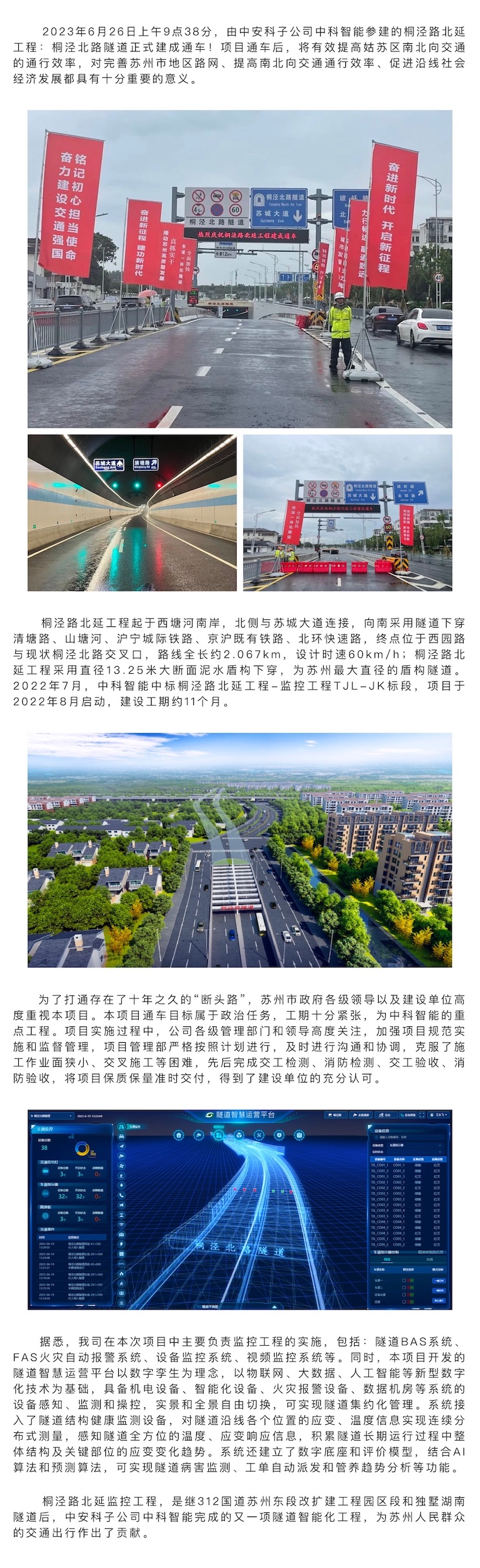 中安科子公司中科智能參建,桐涇北路隧道正式通車