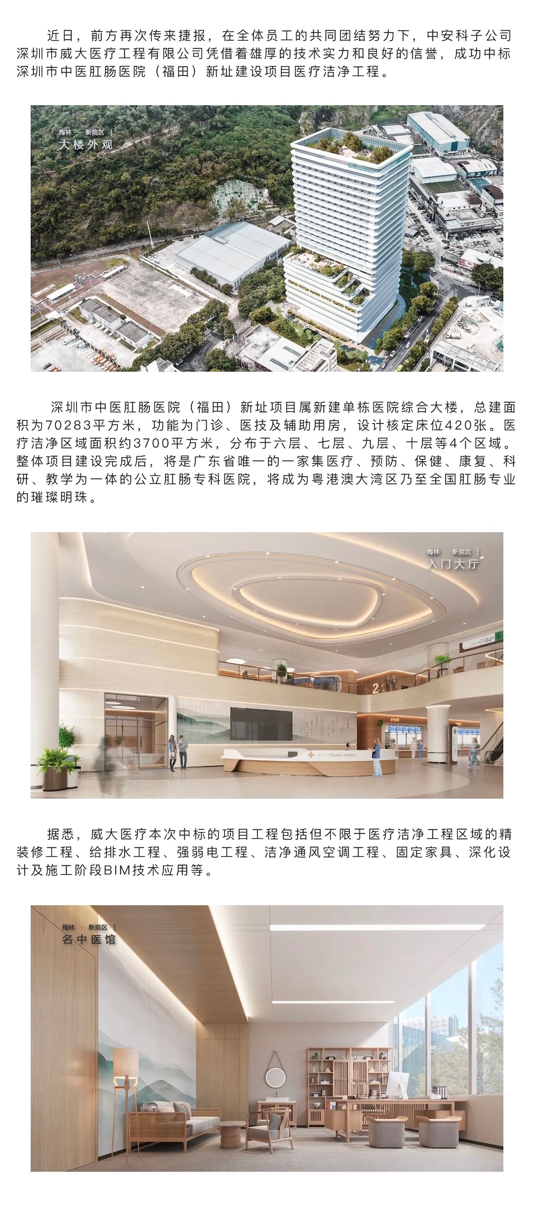 捷報頻傳|中安科子公司威大醫(yī)療中標(biāo)深圳市中醫(yī)肛腸醫(yī)院(福田)新址建設(shè)項目醫(yī)療潔凈工程