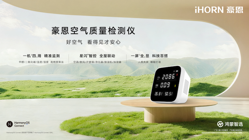 2025年12月1日,鴻蒙智選生態(tài)合作伙伴iHORN豪恩(中安科股份全資子公司)宣布,旗下首款搭載星閃連接的空氣質(zhì)量檢測儀正式上線華為商城以及華為鴻蒙智家門店。