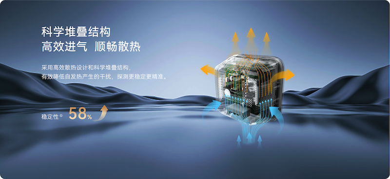 高精度檢測芯片搭載華為鴻蒙智家自適應(yīng)算法,能對每一路傳感器信號做實(shí)時(shí)補(bǔ)償與融合處理,保障傳感器即使處于復(fù)雜環(huán)境下也能穩(wěn)定探測,抗干擾能力提升17.9%*。