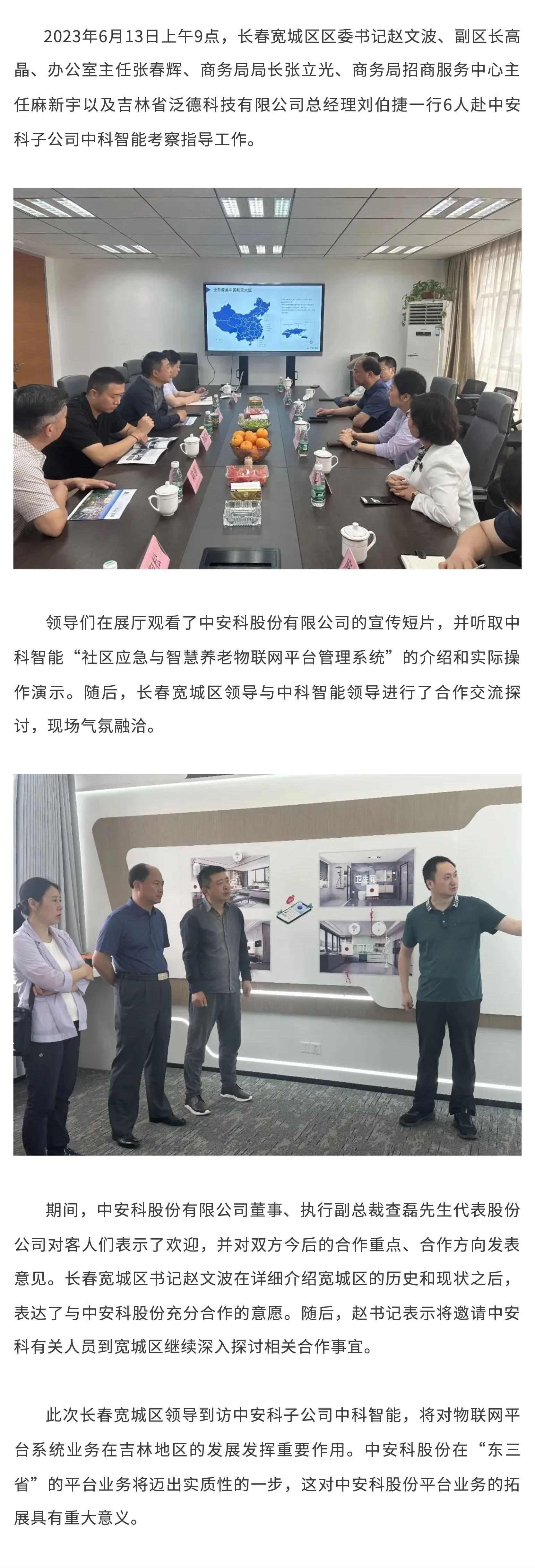 長春寬城區領導赴中安科子公司中科智能考察指導工作