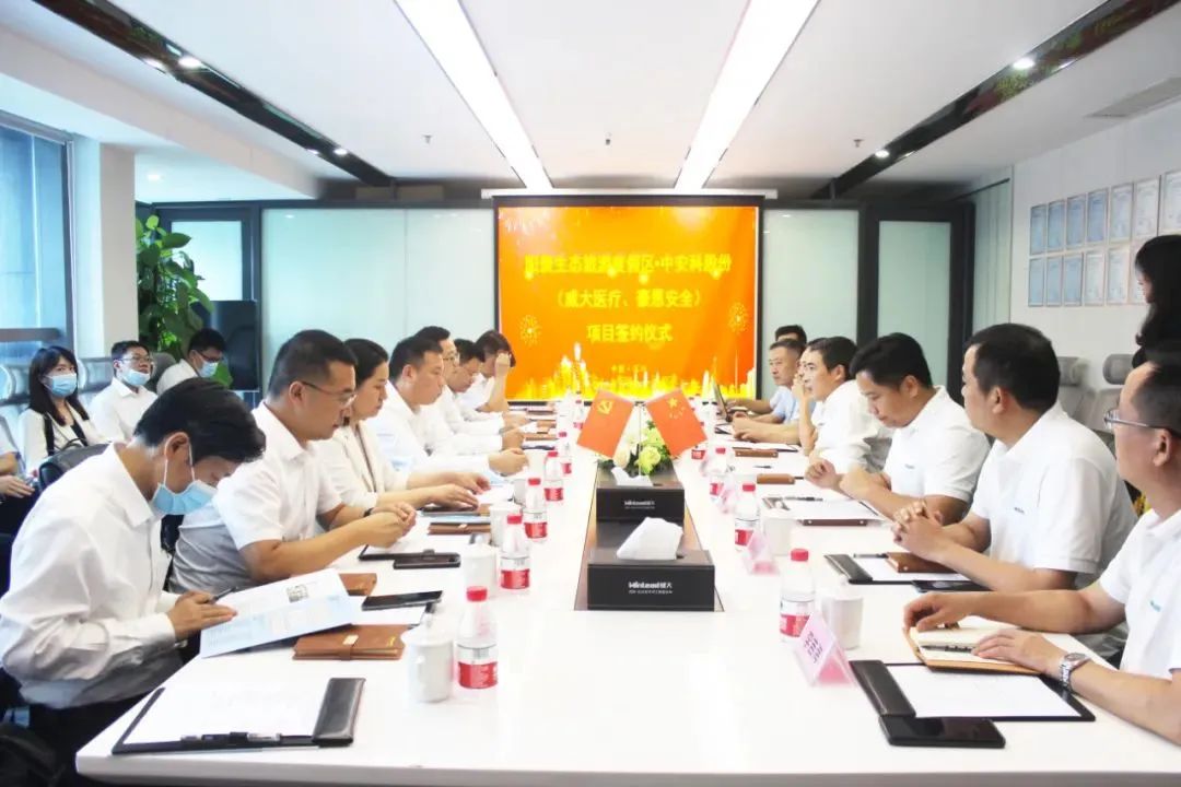 7月9日,中安科子公司(威大醫療、豪恩安全)與江蘇省宜興市陽羨生態旅游度假區項目合作簽約儀式在深圳市威大醫療系統工程有限公司隆重舉行。宜興市委書記封曉春、市委常委任飛等領導一行,與中安科股份集團董事長吳博文、威大醫療總經理李振東、豪恩安全總經理文洪等親臨簽約現場,共同見證并進行了項目簽約。