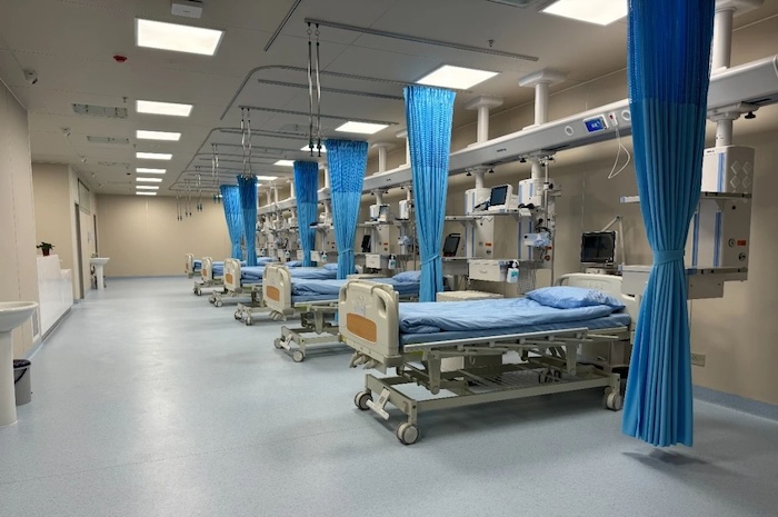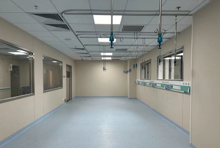 其中負三層醫學放療區、負一層EICU、負一層急救中心、負一層CT室、一層靜脈配液中心、二層影像中心、二層呼吸內科、二層DSA手術室、三層檢驗中心、三層婦科、三層產科門診手術室、四層消化內鏡、四層日間手術室、四層病理科、四層口腔科、五層手術中心、五層手術部更衣區、五層眼科門診、六層ICU、六層輸血科、六層凈化設備機房、七層血液透析、八層產科、九層NICU、十層PICU、十一層C臂室、十三層燒傷病房、十六層眼科手術室、十八層CCU合計約23000平米,共計26個科室,均由威大醫療負責施工完成。