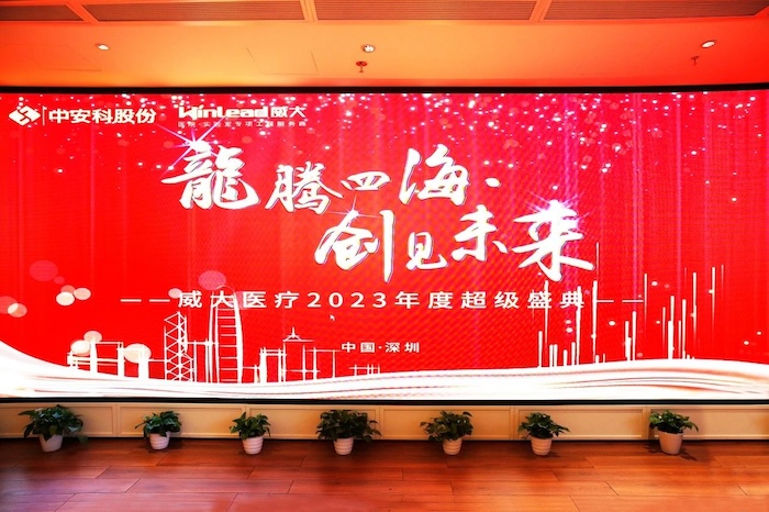 中安科股份董事長吳博文先生親臨威大醫療2023年度超級盛典現場并發表講話。董事長首先對威大醫療2023年取得的成績給予了高度評價和肯定,他強調2024年我們將面對更大的挑戰與機遇,他期待威大在新的一年里以嶄新的姿態譜寫出新的輝煌,并對參加晚會的所有同事致以了最誠摯的感謝和新春的祝福!