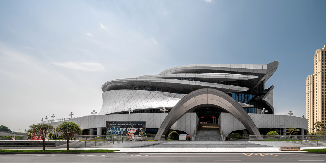 寶雞大劇院是寶雞的核心地標(biāo)式建筑之一,設(shè)計(jì)凸顯了寶雞精神中“聞雞起舞、開(kāi)放創(chuàng)新”的元素,將鳳凰作為建筑的主要靈感來(lái)源之一,從空中鳥(niǎo)瞰寶雞大劇院,其屋頂流線像是三片鳳凰羽翼,隨河邊的清風(fēng)漂浮在城市之中。